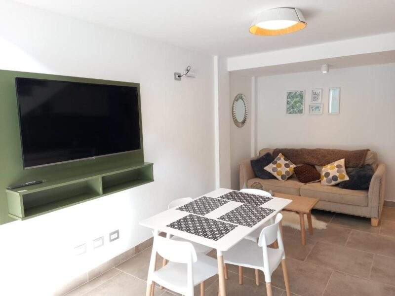Disfruta de la comodidad de una cocina totalmente equipada, perfecta para preparar tus propias comidas después de un día de exploración. Relájate en la sala de estar espaciosa y acogedora, donde encontrarás un televisor de pantalla plana para entretenerte.