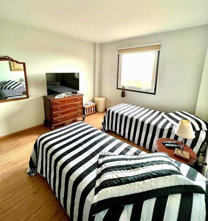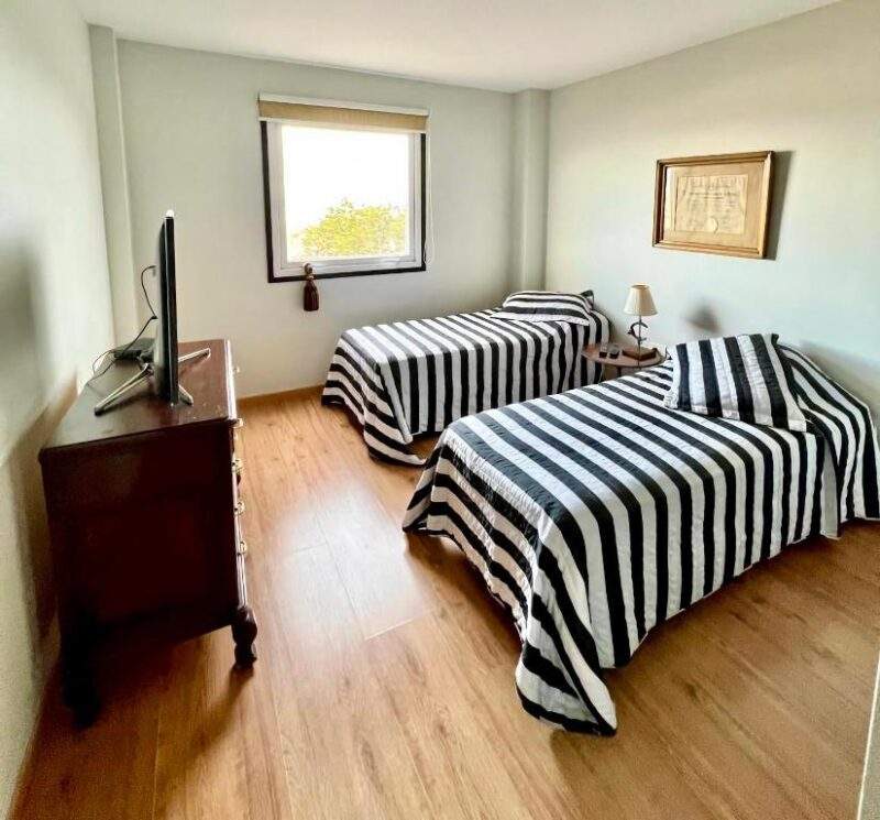 Cuenta con una cocina completamente equipada para que puedas preparar tus propias comidas, una lavadora para tu conveniencia y una TV de pantalla plana para entretenimiento. Las habitaciones son cómodas y espaciosas, con una cama doble grande en el dormitorio principal y dos camas individuales en el segundo dormitorio.