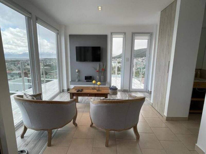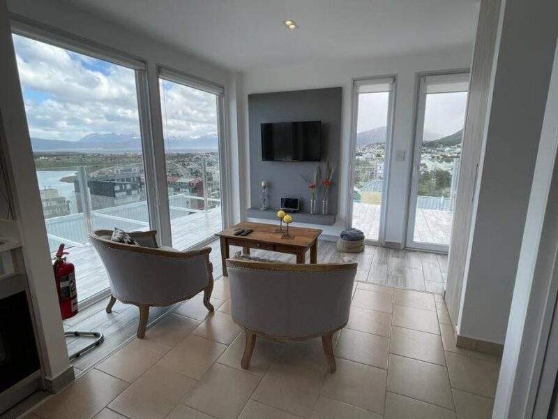 El aeropuerto internacional de Ushuaia-Malvinas Argentinas está a solo 5 km de distancia, lo que facilita tu llegada y salida. Además, la cercanía a la bahía Encerrada te permite disfrutar de las vistas al mar desde tu propio balcón.